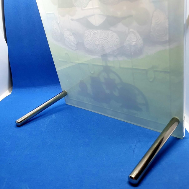 This jigsaw standee has 16 pieces in total, and once complete is framed in front of an original painted background. The whole frame stands at around 21cm tall, and comes with four screws (incl two long screws to hold it upright) to seal the base, the pieces, inner frame, and top frame together.